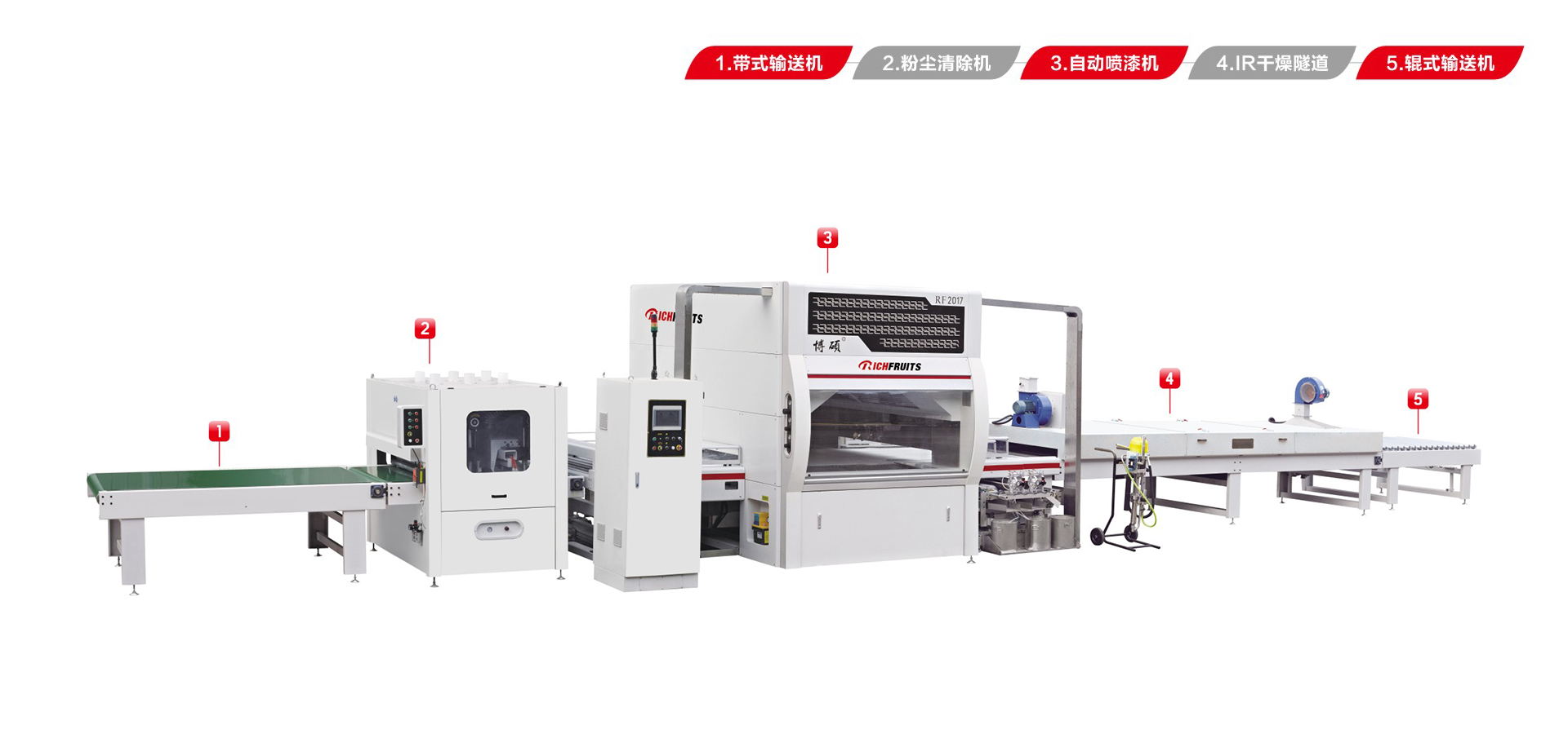 021300mm自動噴漆線適用于板式家具、實木門、櫥柜門、工藝品、裝飾板、硅酸鈣板、玻鎂板、水泥纖維板等板式工件的平面和四個側邊進行高質量效果、大批量連續自動噴漆。