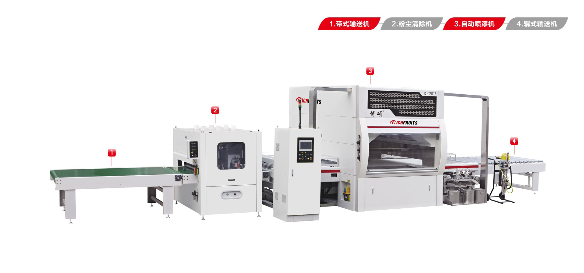 011300mm自動噴漆線適用于板式家具、實木門、櫥柜門、工藝品、裝飾板、硅酸鈣板、玻鎂板、水泥纖維板等板式工件的平面和四個側邊進行高質量效果、大批量連續自動噴漆。