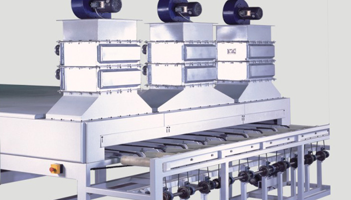 適用于門框線、畫框。舌槽企口板門窗配件、家具配件、踢腳線、地板、塑鋼型材和木塑線條等長條型且規格統一的工件的三個表面,針對PU、NC、UV和水性漆自動噴漆后的油漆流平和干燥。