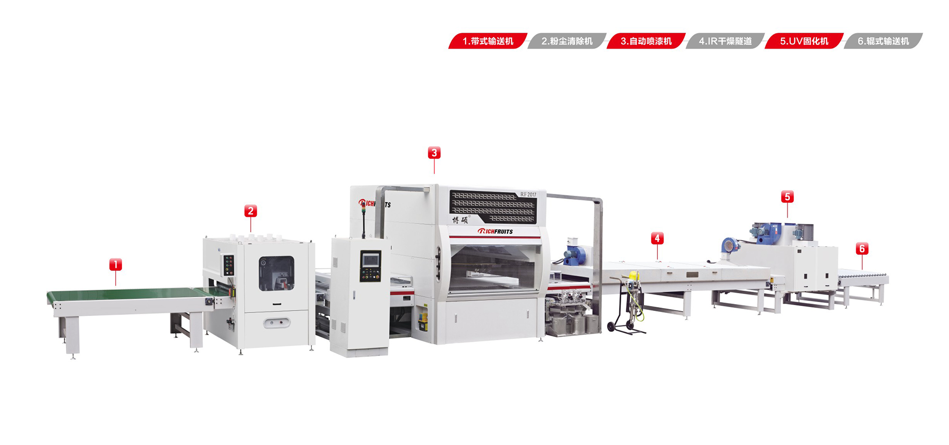 適用于板式家具、實(shí)木門、櫥柜門、工藝品、裝飾板、硅酸鈣板、玻鎂板、水泥纖維板的板式加工件的平面和四個(gè)側(cè)邊進(jìn)行高質(zhì)量、大批量連續(xù)噴漆。