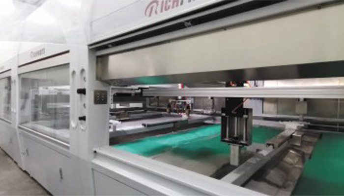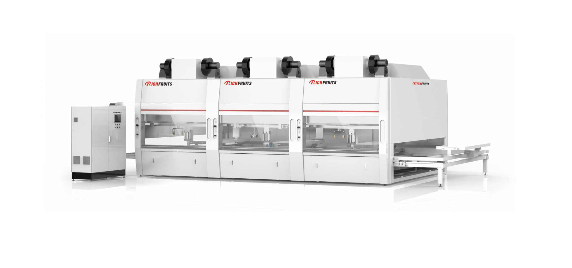 B21300MM 三工位木門噴漆機適用于木門雙面懸空噴漆,采用數控往覆噴漆模式,將整門噴漆的動作拆解為三個噴漆工位:第一個工位噴木門的A面,第二個工位噴邊部和凹凸線以及自動翻面,第三個工位噴B面;三工位同時工作,可以將木門控制在45秒之內完成一扇門的噴漆。無托架懸空支撐結構,木門懸空長度自動調節,配光幕掃描系統掃描木門的尺寸和造型,數控往覆噴涂模式,可以進行十字方式噴涂。