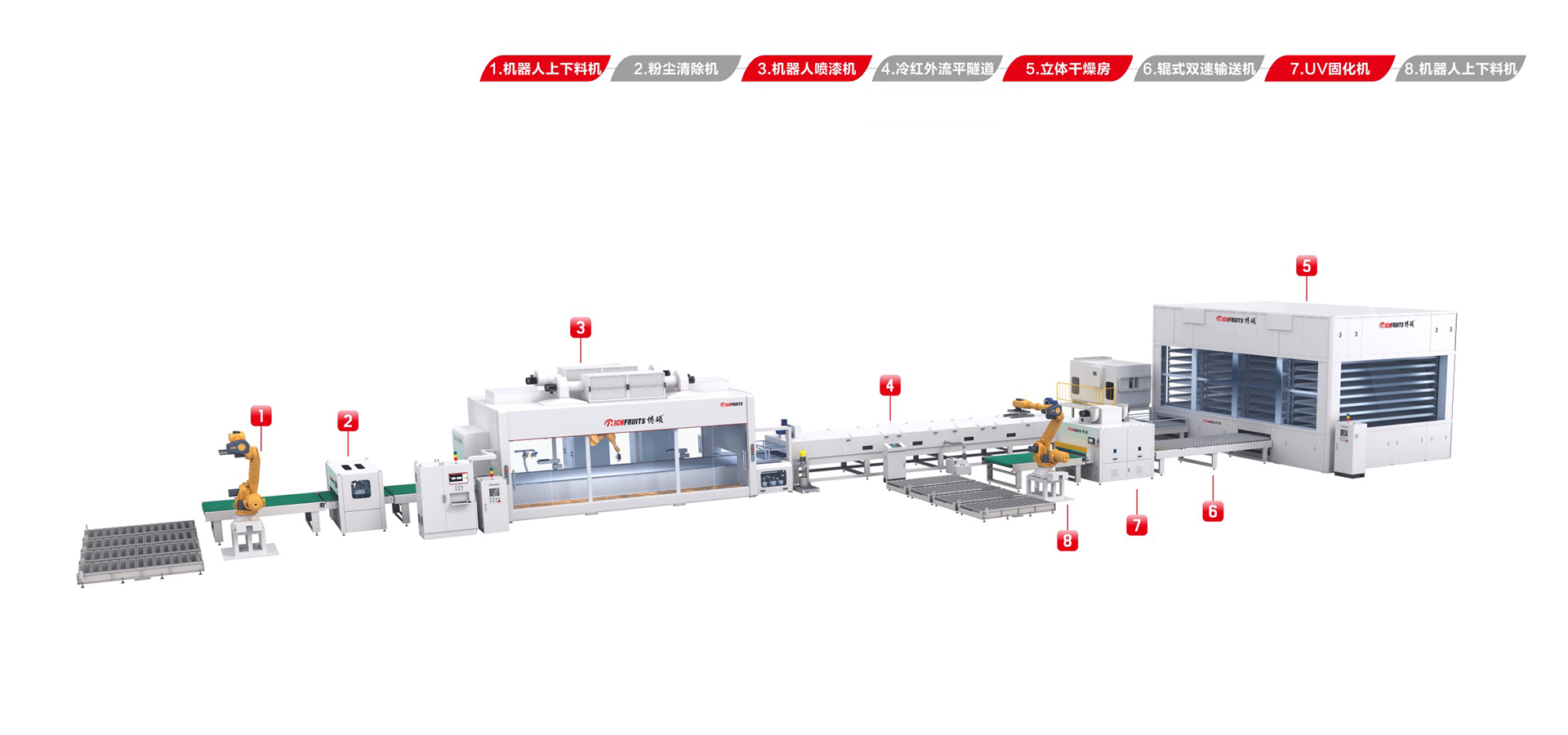 具有優(yōu)良的漆霧控制,自主研發(fā)的多層油漆回收系統(tǒng)讓油漆利用率達到95%以上,同等產量一年可節(jié)省30%以上的涂料成本,節(jié)省成本。