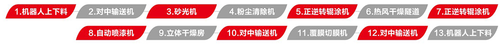 實(shí)色氟碳漆和銀粉氟碳漆的混合生產(chǎn)線,解決了既能生產(chǎn)實(shí)色氟碳漆又能生產(chǎn)金屬銀粉漆的一線兩用效果。輥噴結(jié)合的模式,不但節(jié)省油漆,提升產(chǎn)效,同時(shí)使銀粉顆粒豎起均勻排布,漆面效果優(yōu)于全輥涂的壓平效果,提升產(chǎn)品的質(zhì)量。