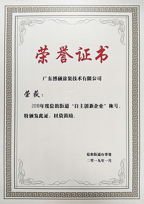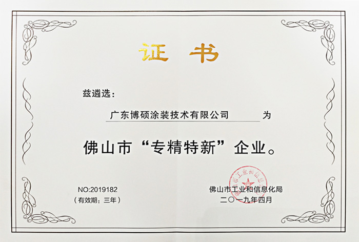 榮獲“佛山市涂裝一體化演講開(kāi)發(fā)中心” “廣東省博碩涂裝一體化工程技術(shù)研究中心”