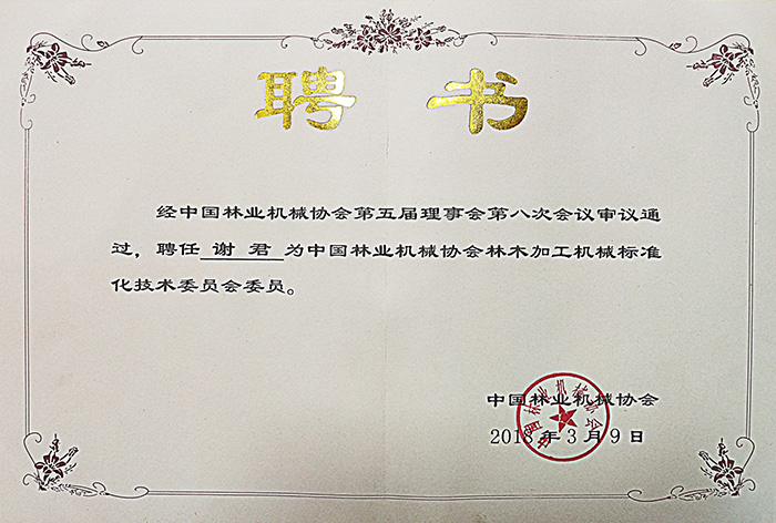 林機(jī)協(xié)會(huì)專(zhuān)員聘書(shū)