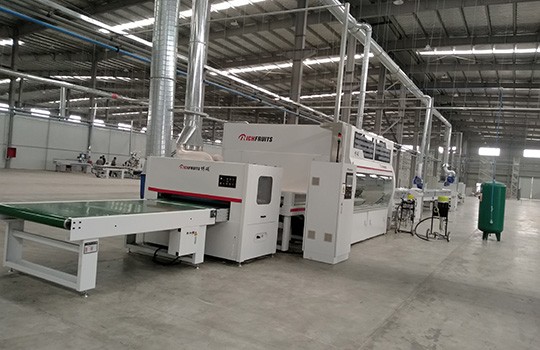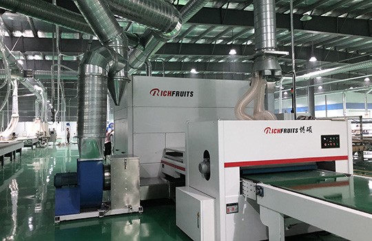 設(shè)備特色 自動(dòng)噴漆、砂光、噴色、修色和面漆,不下線連續(xù)生產(chǎn)。