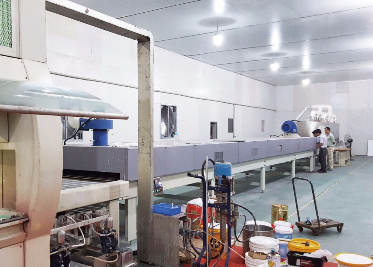 工藝要求 無溶劑UV底漆、PU面漆、水性面漆 產品種類 木門、門套、線條 產線數量 38條 設備特色 無溶劑UV底漆、水性面漆、微波干燥系統應用 生產產能 UV底漆噴涂線:400套門/8h ( 生產員3人/線)