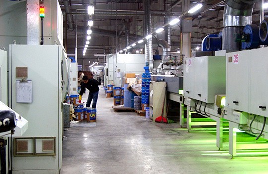 設備特色 無溶劑UV底漆自動連線、PU面漆表干連線。