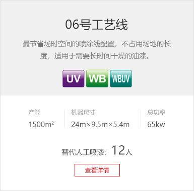 工藝要求 環保PU底漆、PU面漆 產品種類 實木復合門 產線數量 4條 設備特色 帶回收的環保PU漆及立體干燥房,門扇雙面噴漆+立體干燥。 生產產能 600套/天 廢氣處理 干式過濾+催化燃燒處理系統 -