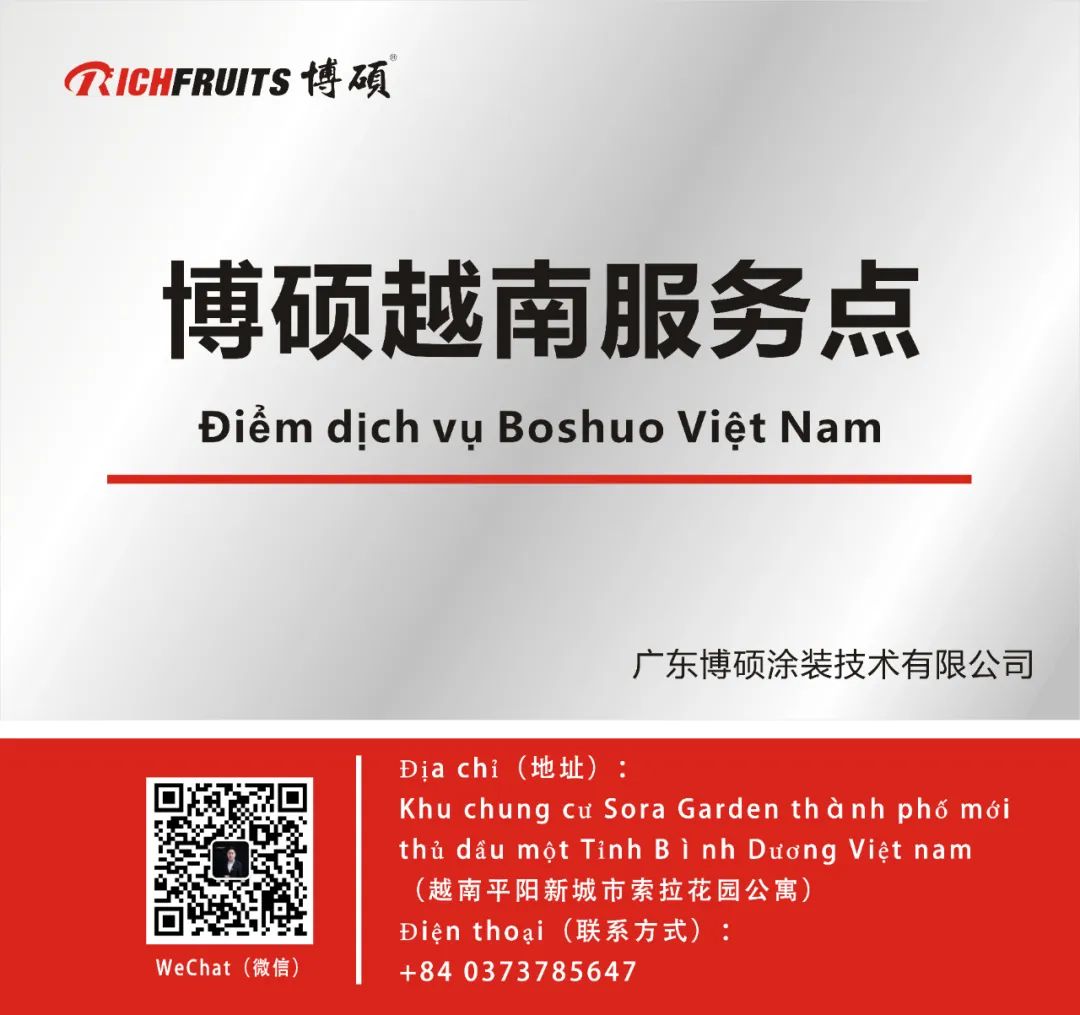 ?? gi?i quy?t s? xa x?i c?a vùng mi?n, rào c?n ng?n ng?, yêu c?u v? k? n?ng s?n xu?t lành ngh? và d?ch v? sau bán hàng k?p th?i, Boshuo ?? thành l?p “?i?m d?ch v? Boshuo Vi?t Nam” t?i Vi?t Nam.