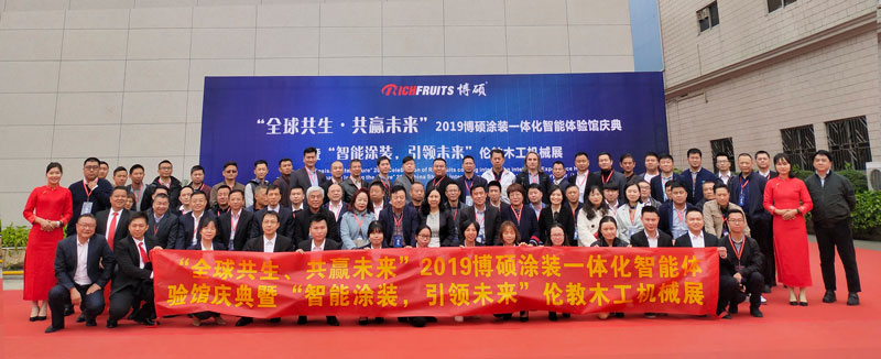 2019年12月5日,“全球共生,共贏未來”2019博碩涂裝一體化智能體驗館慶典在博碩涂裝一體化智能體驗館正式啟動。順德區科技局副局長吳慶強、全國工商聯家具裝飾商會執行會長張傳喜、廣東省定制家居協會會長索菲亞副總裁張挺等80多名設備與涂料圈兒的嘉賓們共同出席此次活動。