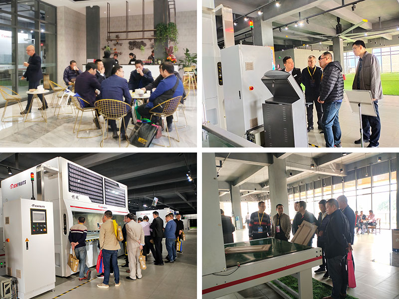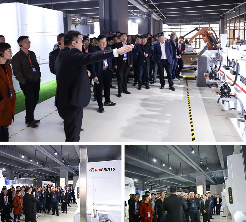 博碩董事長謝君女士、廣東省定制家居協會會長索菲亞副總裁張挺,全國工商聯家具裝飾商會執行會長張傳喜、土耳其木工設備優秀經銷商Cem、上海冠盛木工機械有限公司董事長陳培賢、越南理研聯營RIKEN總經理丁弈瑋、馬來西亞良勝木家具機械有限公司董事長梁韶文、印尼BSA公司董事長Bob一共8位產業鏈大咖共同開啟“涂裝一體化智能體驗館”。