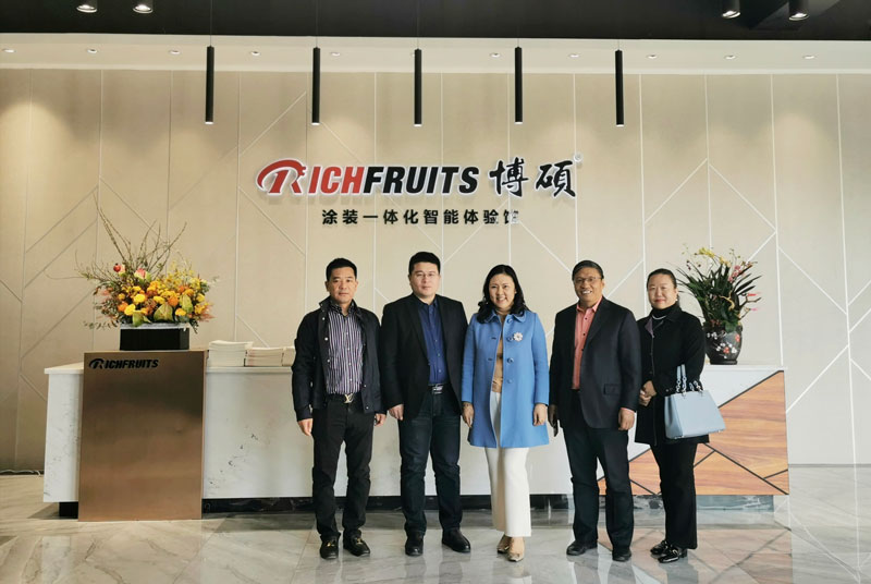 博碩涂一體化智能體驗館的開館不僅得到了行業內的高度認可,政府也給予了厚望,12月6日下午,倫教鎮黨工委書記盧德全書記,黨工委委員、辦事處副主任、倫教經科局局長羅冠明主任、倫教經科局副局長李玉彥局長,環保局局長梁啟滔局長、周錫賢副局長一行到博碩“涂裝一體化智能體驗館”指導工作,深入了解涂裝智能化。