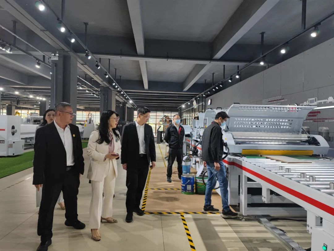再一同體驗了“涂裝智能生產線”準分子膚感板的生產過程,從進料到出成品,感受到準分子膚感板如嬰兒般皮膚細膩的觸感。通過現場感受涂裝設備在效率、智能、環保、節能方面的先進性,劉書記對博碩在技術研發的投入及設備的智能、環保、節能方面的顯著成效給予了充分的肯定和高度的贊揚,對博碩未來及長遠發展非常看好,同時也做出了相關的工作指示。