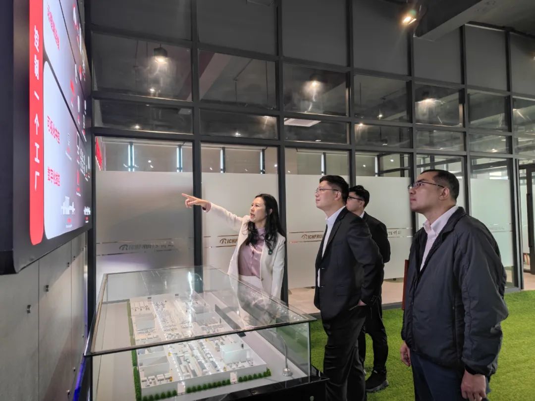隨后博碩董事長謝君向劉書記一行詳細匯報了博碩公司的發展歷程、產品更迭及未來企業戰略布局,尤其是涂裝一體化應用技術1.0到涂裝一體化解決方案2.0的升級。