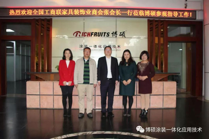 新年躍進,碩果累累,盛事連連,全國工商聯家具裝飾業商會張會長親臨博碩工廠參觀指導,博碩公司謝君董事長就博碩歷程、自動噴漆設備和油漆干燥設備性能、涂裝解決方案進行闡述、分享,張會長就綠色、環保,創新理念給予深刻指導!