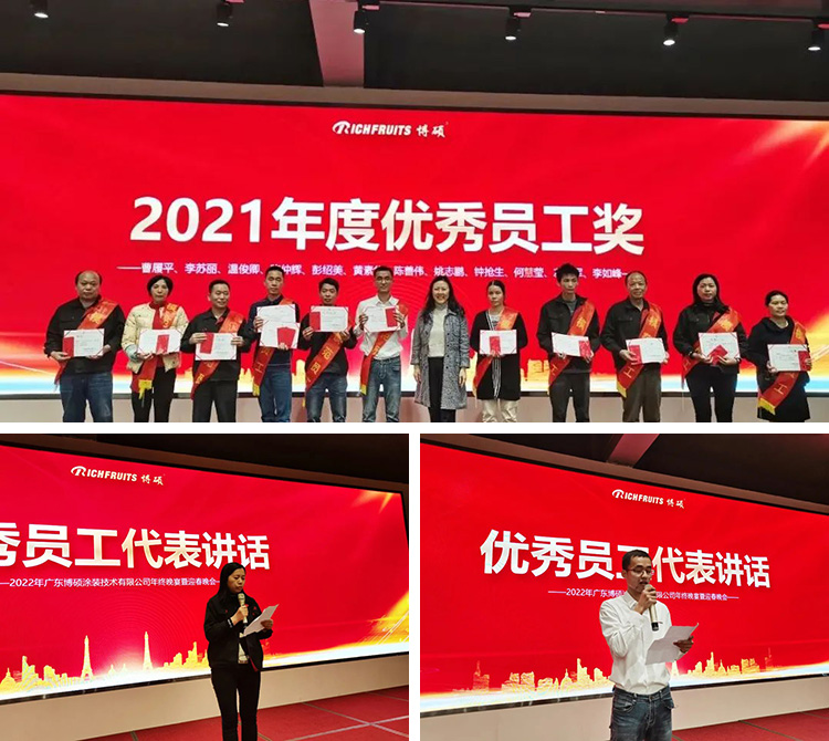 晚會伊始,博碩涂裝董事長謝君女士,向在場的以及因工作原因未能到現場的同事們送上誠摯的新年祝福語,同時也提出了2022年的關鍵詞:增長、組織、蛻變,希望博碩涂裝比此刻更好,希望每一個博碩人比此刻的自己更好,同時帶給客戶更好的體驗。