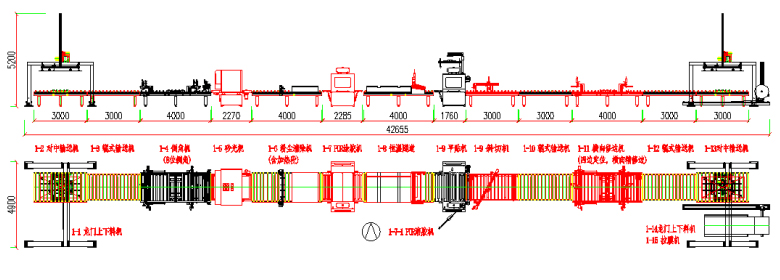 產線尺寸 42.7m*4.9m*5.2m (長*寬*高)